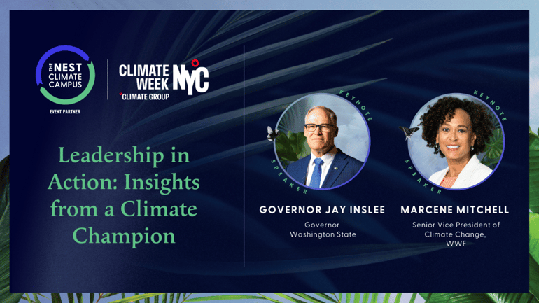 A keynote conversation with two impactful climate action leaders, Governor of Washington Jay Inslee and Marcene Mitchell, Senior Vice President of Climate Change for the World Wildlife Fund.