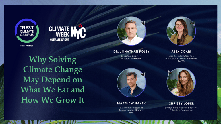 When we think of climate change, we often think of fossil fuels, electricity, transportation, buildings, and industry. But that’s not the whole story. Some 20–35% of human-generated greenhouse gases come from food, agriculture, and land use. And those emissions are growing. The good news? Solutions to curb this impact exist! Jonathan Foley, Executive Director of Project Drawdown, will lead this discussion featuring panelists Alexandria (Alex) Coari (ReFed), Matthew Hayek (NYU), Christy Loper (Robertson Foundation).